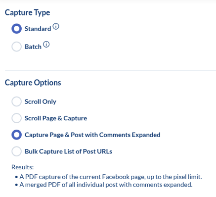 Capturing Facebook content in Page Vault requires logging in, choosing the right capture settings, and understanding how capture types affect the output. Follow the steps below for the best results.